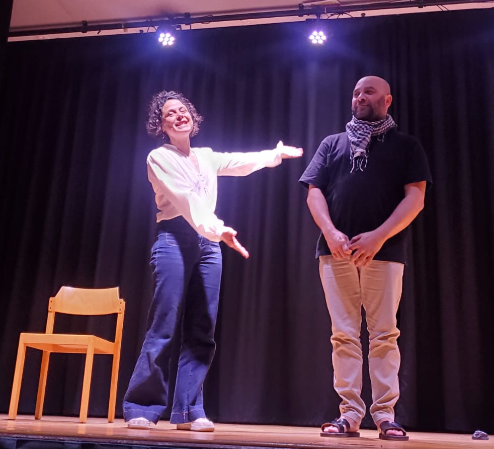 -------------------------------------------------------------------------------------------------------------------------------------------------------------------------------- Jeudi 9 avril 2026 Jérusalem, une pièce d'Ismaël Saidi. A l'initiative du GIP78, Ismaël Saïdi et Fiona Levy sont venus jouer à l'Université Ouverte de Versailles, la pièce Jérusalem . Un débat avec Ismaël Saïdi a suivi. Yaya, coprésident du GIP78, demande quelle a été la genèse de cette pièce. Ismaël explique qu'après Djihad (que le GIP78 a fait jouer au Théâtre de la Nouvelle France au Chesnay en novembre 2017), il a voulu chercher les racines de ce conflit des mémoires. La pièce était prête avant le 7 octobre 2023. Isamël n'a rien voulu changer ensuite lorsque la pièce a commencé à être jouée en 2024. Sarah s'interroge sur la proportion du temps de la pièce consacrée aux deux mémoires de la Shoah et de la Naqba. Ismaël répond que les durées sont sensiblement identiques. De plus l'histoire du grand-père Alqodsi et de la grand-mère Ruth s'arrête en 1948, même si cela entre en résonance avec l'actualité récente. Et tout est historique, sauf bien sûr les deux personnages Alqodsi et Ruth.